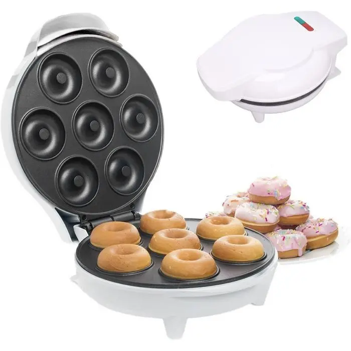 RECIÉN HORNEADO RÁPIDO Y FÁCIL: Rinde 7 donas a la vez, perfecto para compartir, entretener y a los niños les encantará. Fácil de montar, simplemente conéctelo, agregue la masa y cocine. Fácil de limpiar y almacenar.