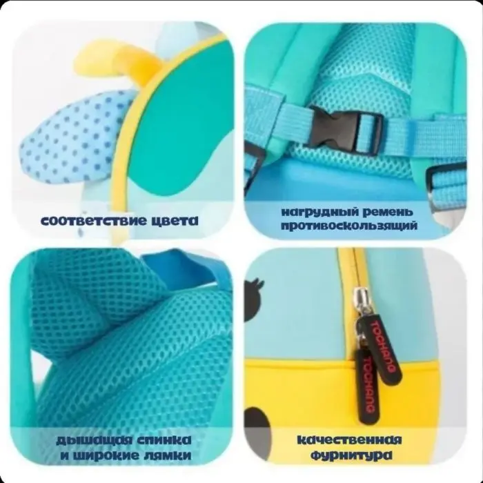 Mochila ZooMaterial Neopreno ImpermeableDiseño ErgonómicoTirante Acolchados y AjustablesCompartimiento InteriorBellos y Entretenidos DiseñosLibre de BPAAltura x Ancho x Profundidad: 27 cm x 23 cm x 9 cm Peso: 180 g
