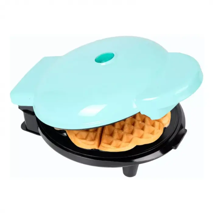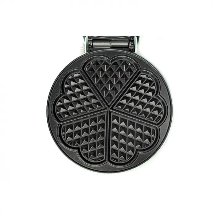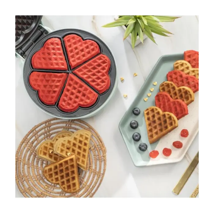 Maquina para hacer wafles en forma de corazon, waflera electrica.Potencia : 700 wDiametro : 18.5 cmSalen 5 porciones de mini wafles en forma de corazón.1 Wafle Largo de donde surgen 5 mini wafles en forma de corazón.Fácil de limpiar